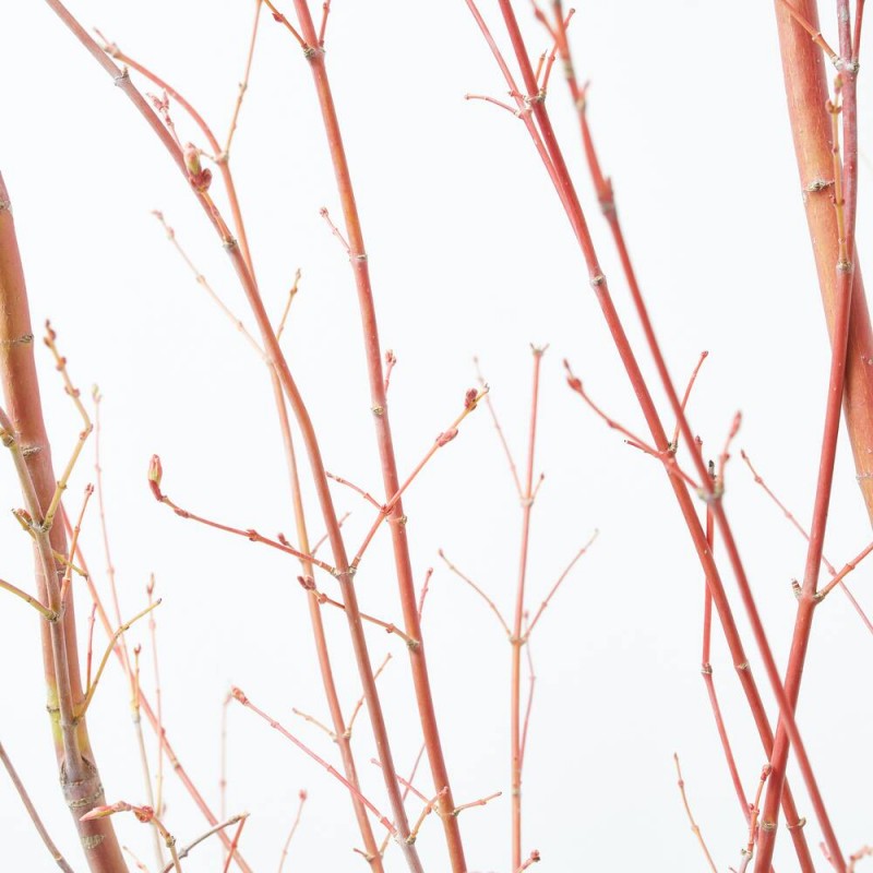 El Acer palmatum 'Sango Kaku' es una variedad muy apreciada por su corteza coralina y su follaje vibrante.