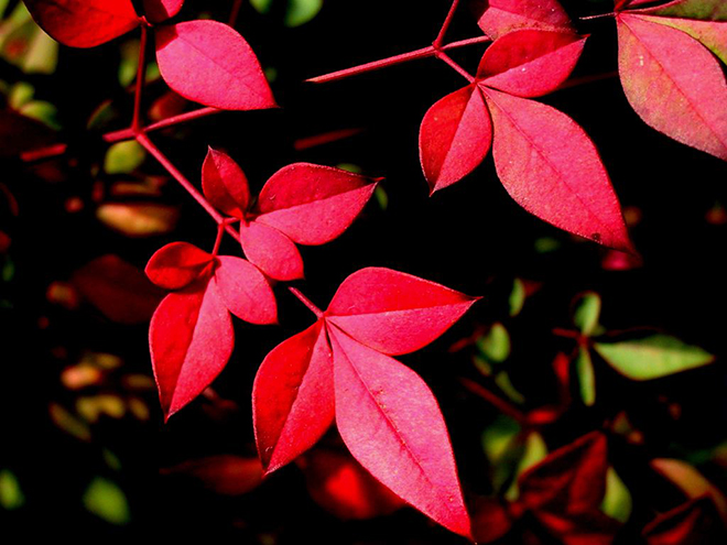 Al igual que la Pieris, la Nandina es originaria de Asia (Japón y China) y comparte con ella la espectacularidad de sus hojas rojizas, que suelen tomar este color en fechas próximas a la Navidad, como la flor de Pascua. Amante de la sombra y de las zonas calurosas, tampoco es una gran amante del riego: mientras en verano no necesita demasiada agua, un riego cada tres días, en verano el ciclo de riego es todavía más largo. Bastará con uno cada diez días.