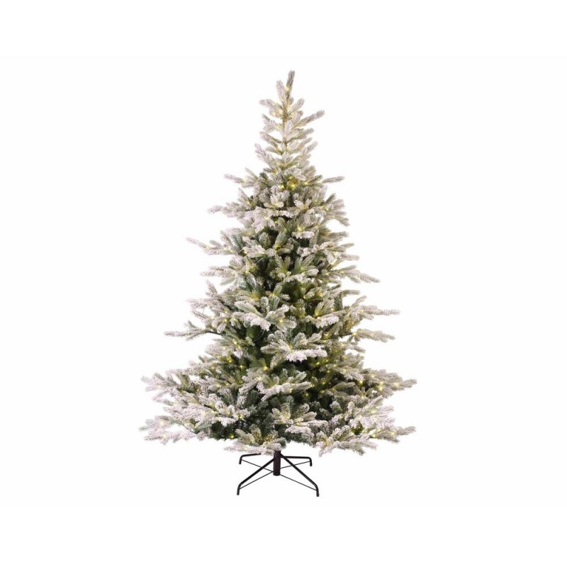 Árbol de navidad efecto nevado artificial con un aspecto natural y con luces micro LED ya incorporadas de color blanco cálido. Sus ramas son flexibles y articuladas, lo que facilita un rápido montaje y desmontaje. Para uso exclusivo en interior.
