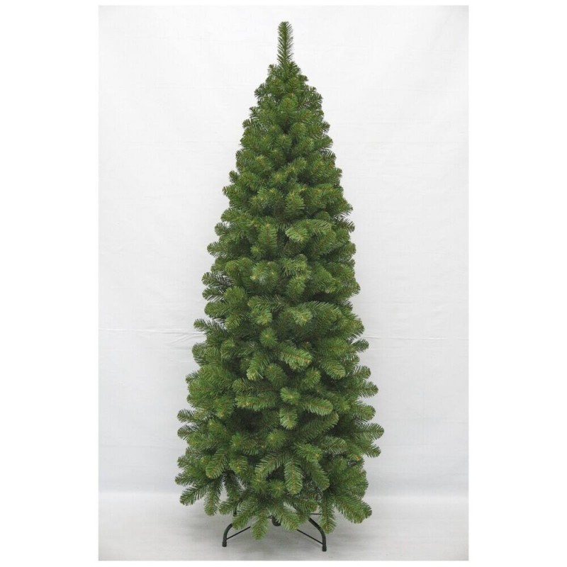 Árbol de navidad artificial frondoso, con un aspecto muy natural de estilo estrello y alargado. Sus ramas son flexibles y desmontables, lo que permite adornarlo con todo tipo de accesorios colgantes y luces de navidad.