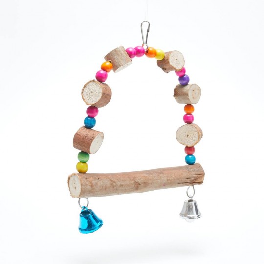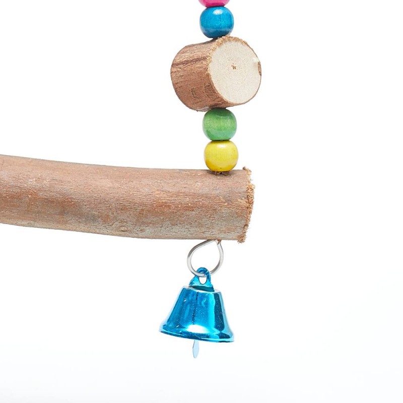 Columpio para aves con perlas de colores. Perfecto como enriquecimiento ambiental, además de ser un estímulo, cuida el pico y las uñas del ave.