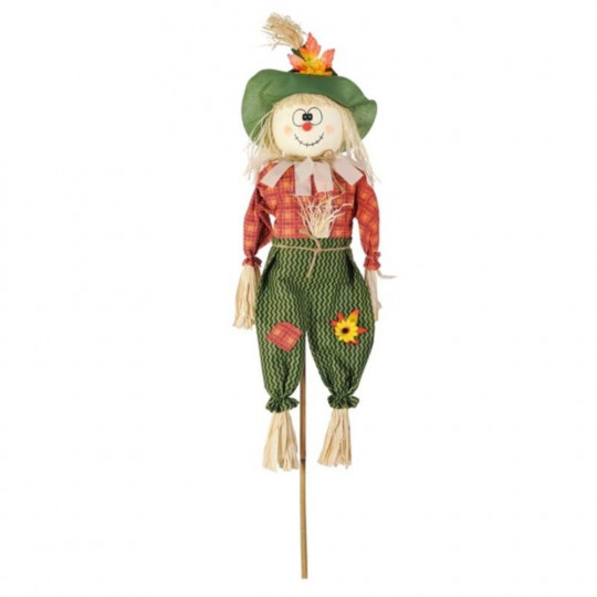 Figura de espantapájaros de 120 centímetros. Materiales naturales. Disponible en varios diseños. Para utilizar tanto en el huerto como en el jardín o la terraza. Precio unitario.
