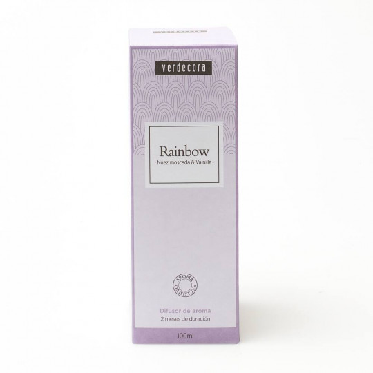 Ambientador con aceites esenciales naturales de marca Verdecora. Rainbow es un perfume únicoque te proporcionará una sensación de alegría instantánea. Un aroma floral y dulce con matices frutales, de ámbar y un ligero toque especiado. Perfuma estancias durante mucho tiempo con estos ambientadores de varillas, que te regalarán un aroma sutil y continuo durante semanas.