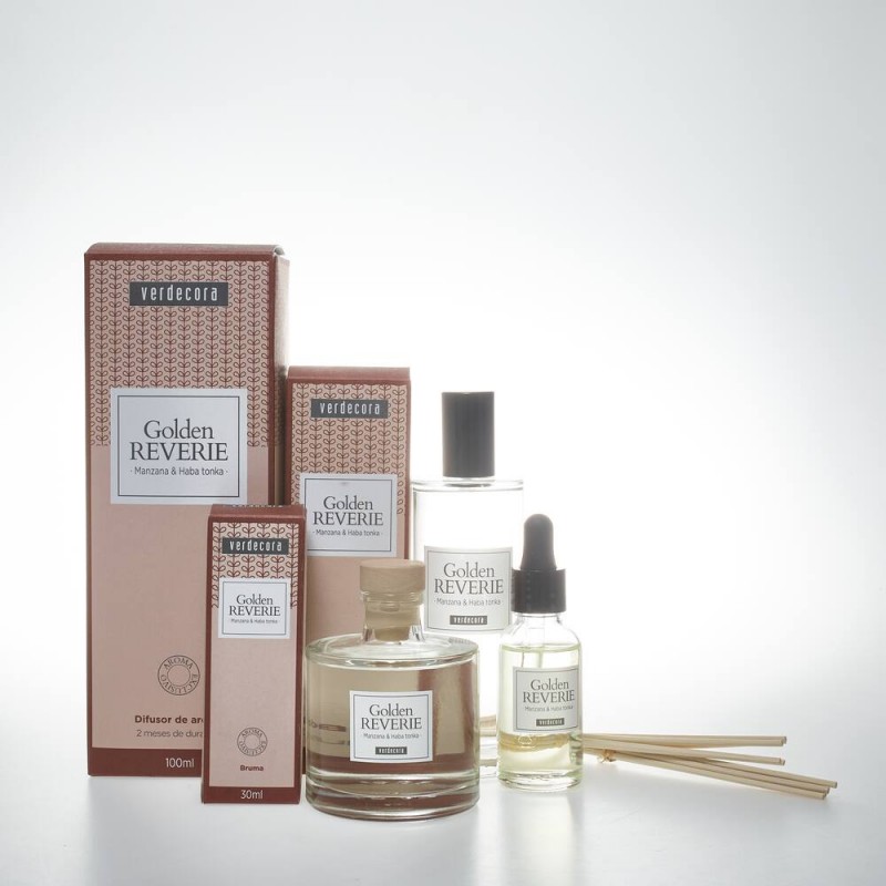 El difusor de aroma "Golden Reverie" de Verdecora combina la frescura jugosa de la manzana con la riqueza dulce y especiada de la Haba Tonka, proporcionando una experiencia sensorial única y envolvente. Este difusor está diseñado para crear una atmósfera cálida y relajante en cualquier espacio, ya sea en el hogar, oficina o cualquier lugar que necesite un toque de frescura y elegancia.