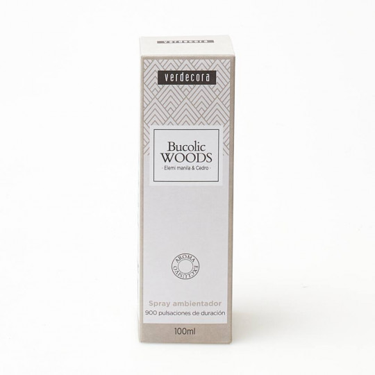 Ambientador en spray marca Verdecora con fragancia Bucolic Woods.