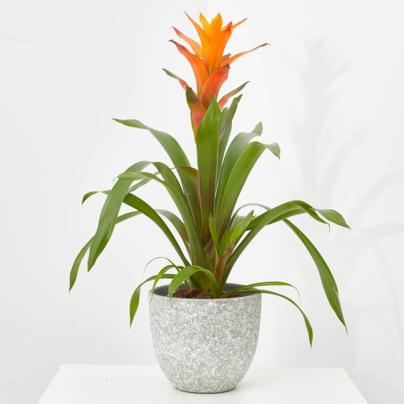 La Bromelia es un género tropical americano de plantas de la familia Bromeliaceae, aunque normalmente se llama con el mismo nombre a plantas de otros géneros de la misma familia. Sus hojas son duras y largas de color verde, con una flor central con colores llamativos, además tienen un cáliz muy profundo. Lo mejor de todo es que es una planta con unos cuidados muy sencillos, perfecta para decorar tu hogar con un toque exótico.