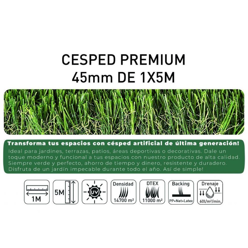 Opiniones sobre CÉSPED ARTIFICIAL PREMIUM 45MM DE 1X5M