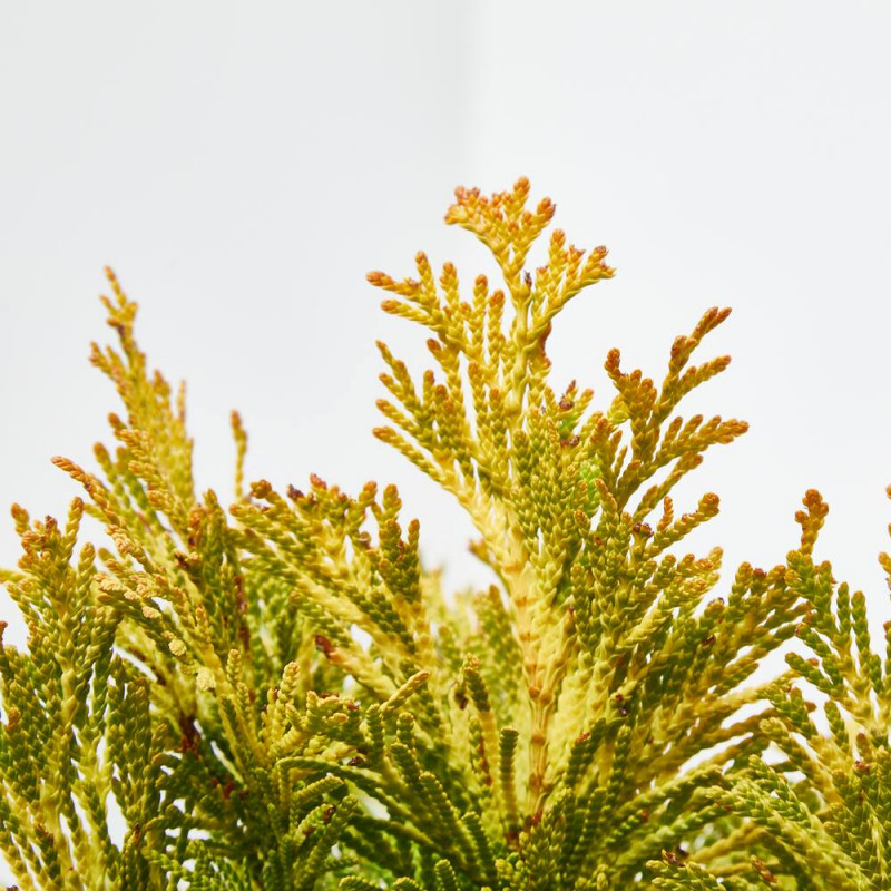 La Thuya plicata 'Goldy' es una variedad de thuya occidental, conocida por su llamativo follaje dorado. Es una planta conífera ornamental muy apreciada en jardinería por su colorido y su forma elegante.