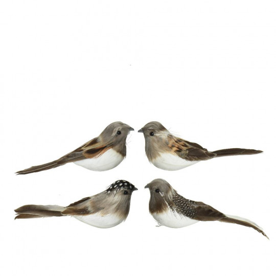 Figura de pájaro artificial en espuma (foam) en color marrón y con detalle de plumas naturales.