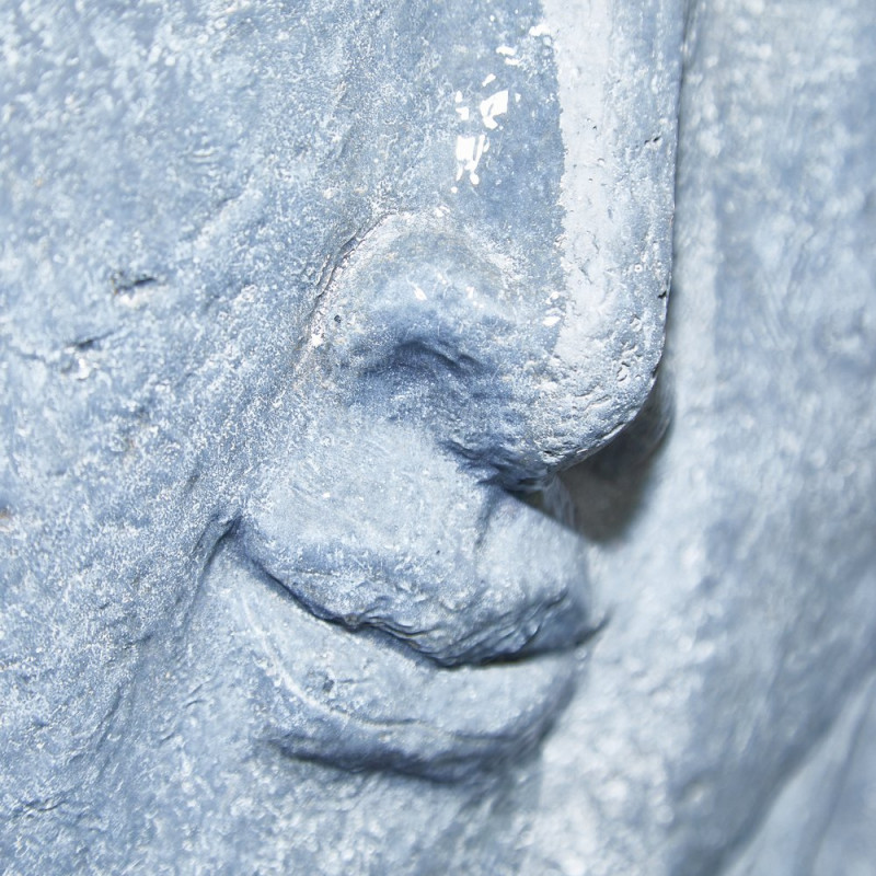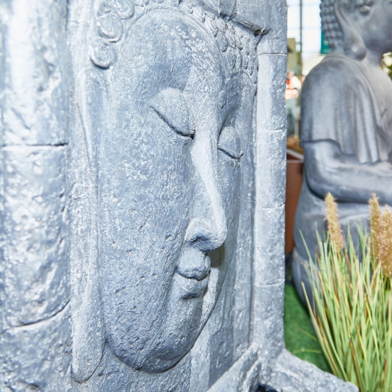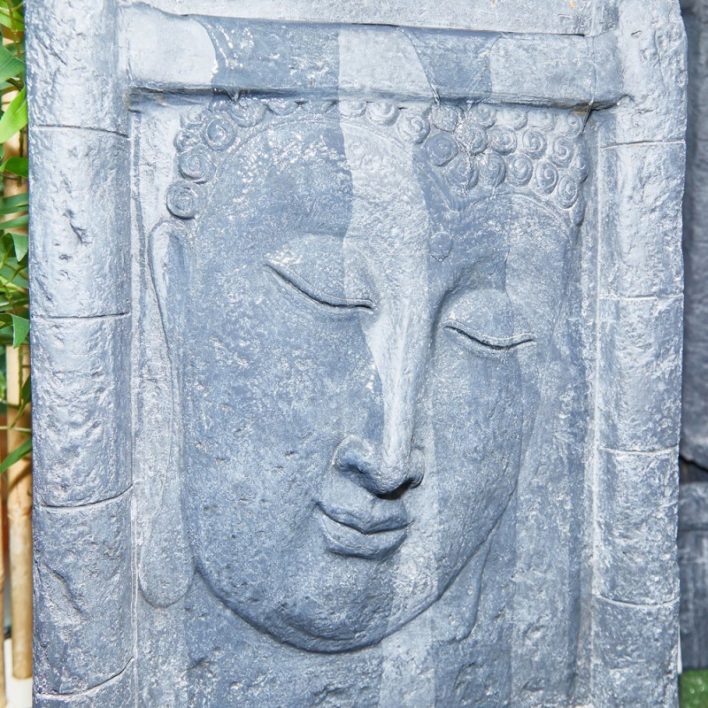 Fuente de hormigón con fibra de vidrio, con relieve de la cara de Buda.