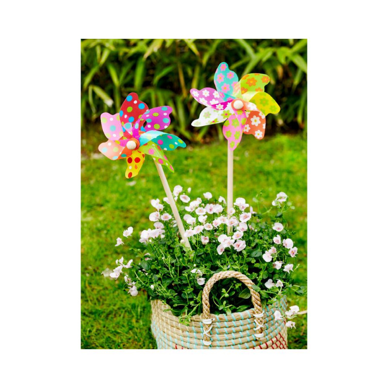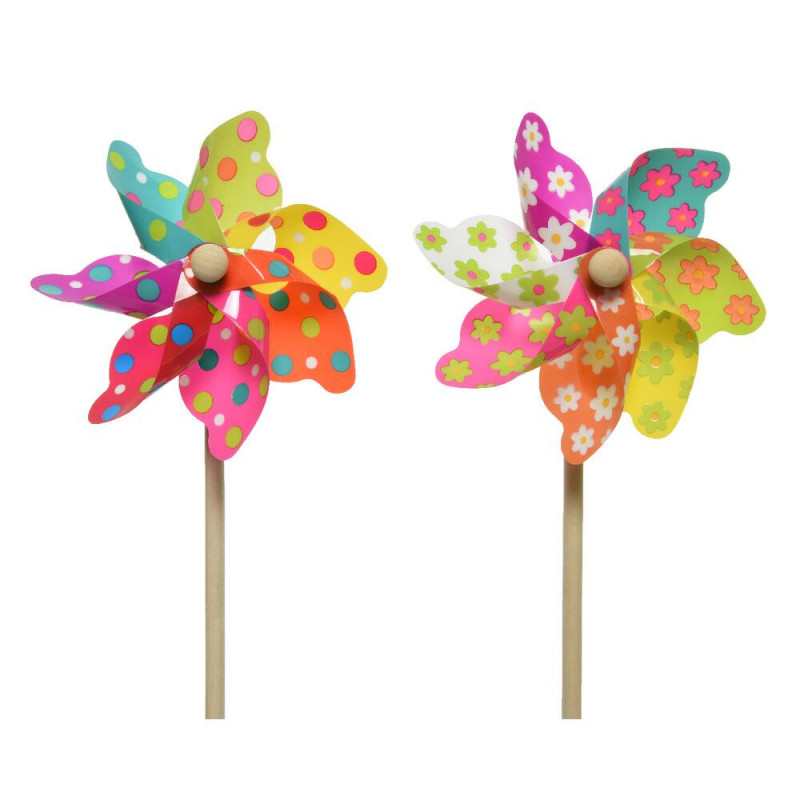 Molinillo de plástico con estampado flores/lunares de 48cm de altura. Un elemento decorativo, original y actual, con el que ambientar cualquier espacio exterior.