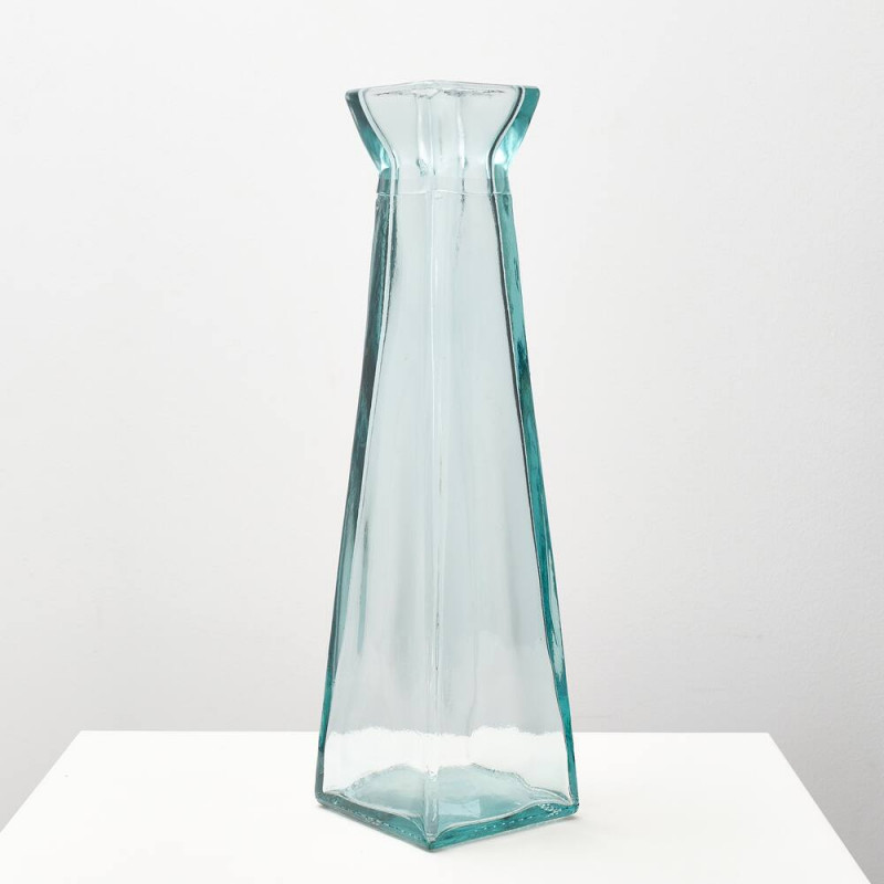 Florero de vidrio transparente con una bonita forma piramidal. Perfecto para decorar con nuestras flores favoritas frescas o artificiales y dar vida y alegria a ese rincon que tanto nos gusta de nuestro hogar.
