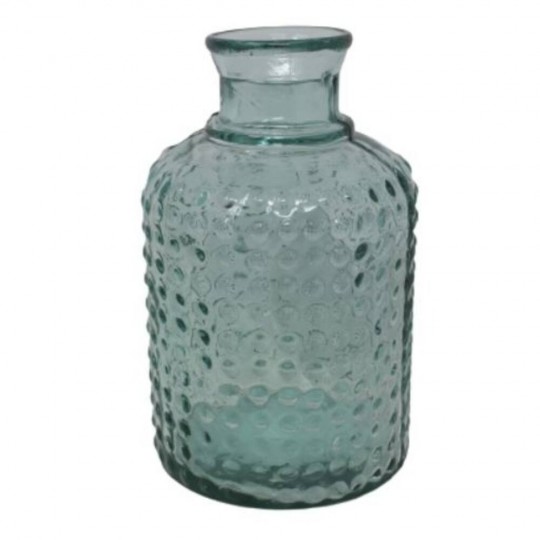Damajuana de vidrio decorativo combina funcionalidad y estilo. Con su diseño texturizado y acabado translúcido, este jarrón es perfecto para complementar cualquier decoración moderna o tradicional.