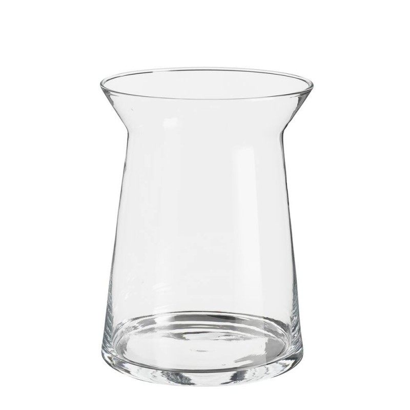 Jarrón de cristal ancho con cuello en apertura lo que hace de él una pieza muy especial con la que decorar cualquier rincón de tu hogar.
