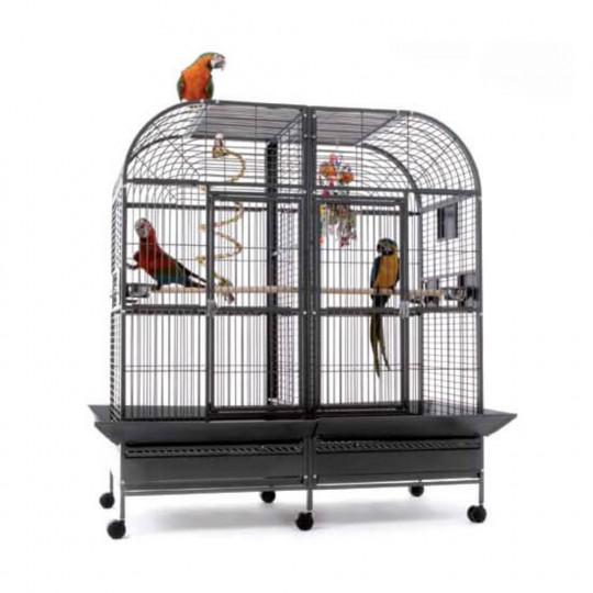 Esta jaula doble y espaciosa es ideal para varios loros y otras aves grandes, diseñada con un elegante techo curvo que maximiza el espacio interior. Fabricada en metal resistente, esta jaula ofrece una solución práctica y estética para el alojamiento de tus aves, proporcionando seguridad, entretenimiento y espacio suficiente para que se muevan con libertad.