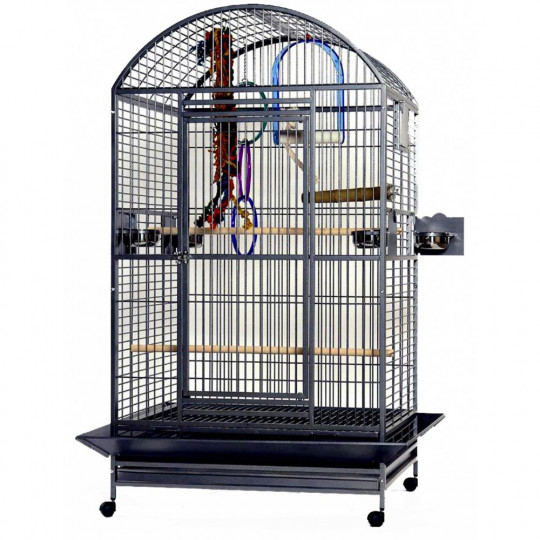 Esta jaula grande, con un diseño elegante de techo curvo, es perfecta para loros y aves de gran tamaño. Fabricada en metal de alta calidad, garantiza la seguridad y el confort de tus aves, proporcionando un espacio amplio y bien equipado para su bienestar. Con varios accesorios incluidos, esta jaula fomenta el juego y la actividad de tus aves, manteniéndolas saludables y entretenidas.