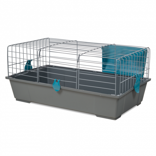 - Jaula para conejo fabricada con alambre y plástico de polipropileno, pintura sin plomo.
