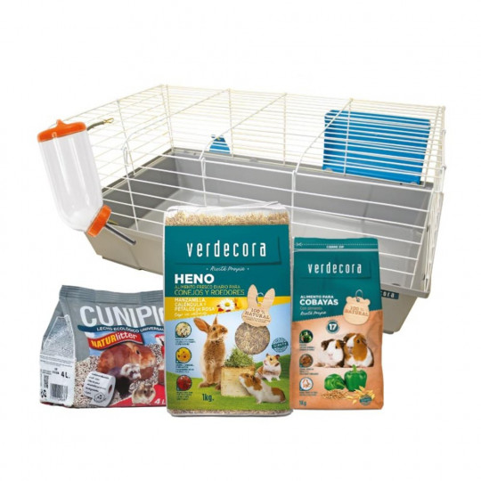 En Verdecora hemos pensado en este lote para tu cobaya, que le proporcionará el mejor descanso, alimentación y cuidados posibles.