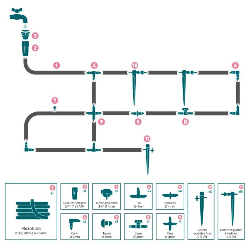 Es necesario seguir los siguientes pasos para utilizar el kit de micro riego Verdecora.
