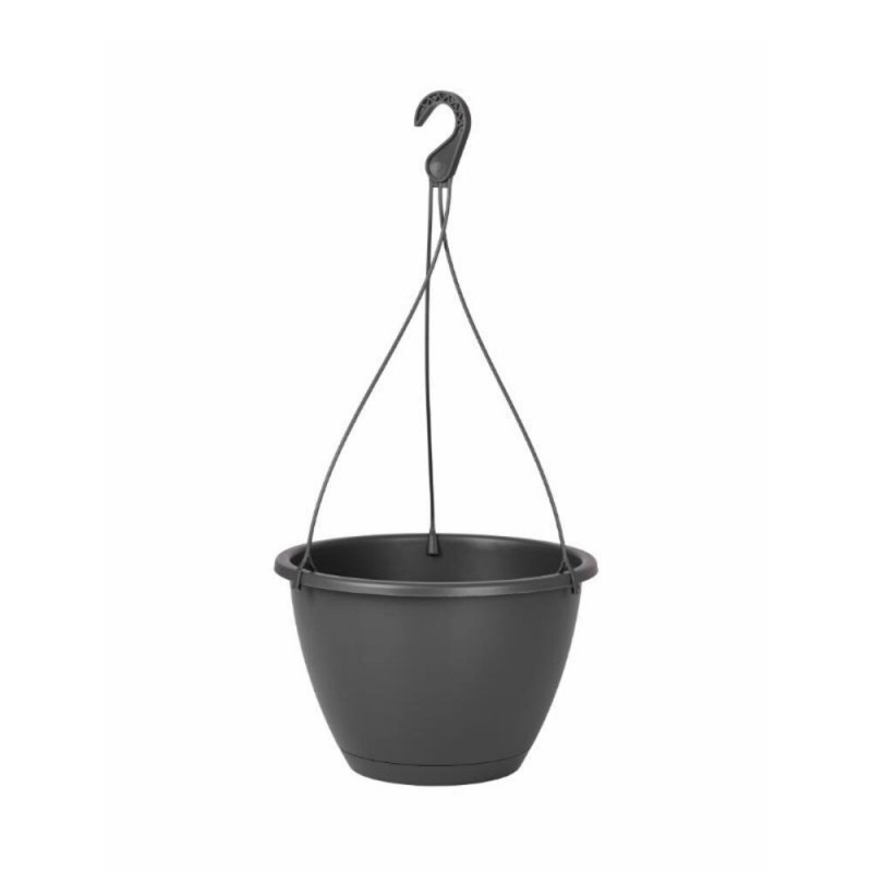 Maceta redonda ligera color antracita con colgador del mismo color.