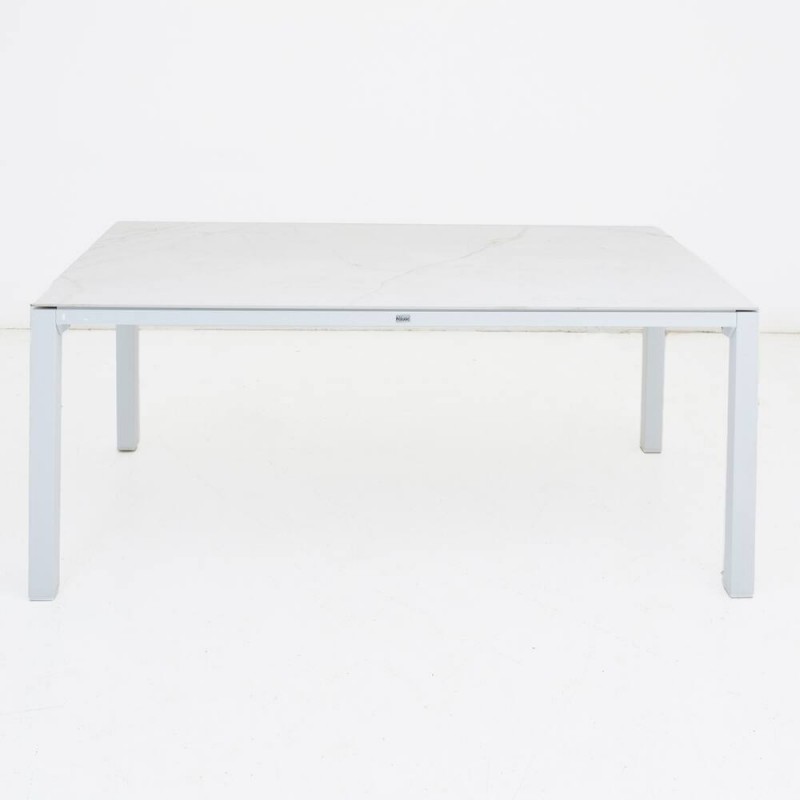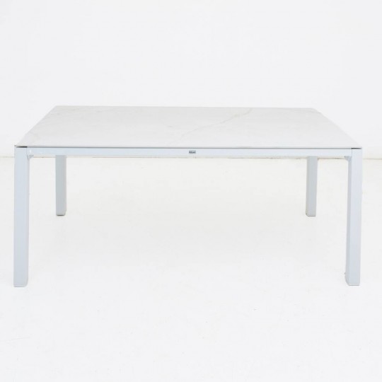Las líneas gráficas de esta mesa rectangular aportan un encanto increíble a un espacio exterior. Al mismo tiempo, el encanto reside en el sentido de los volúmenes y las perspectivas. La estructura de aluminio se combina con una encimera robusta y de fácil mantenimiento. La combinación única de materiales la convierte en una mesa de jardín que disfrutará usando a lo largo de los años.