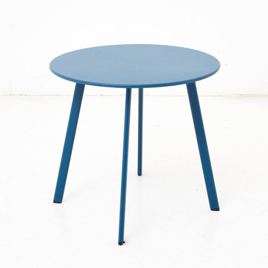 Mesa auxiliar para jardín, terraza o balcón en color azul. Con su diseño minimalista y funcional, es ideal para espacios pequeños.