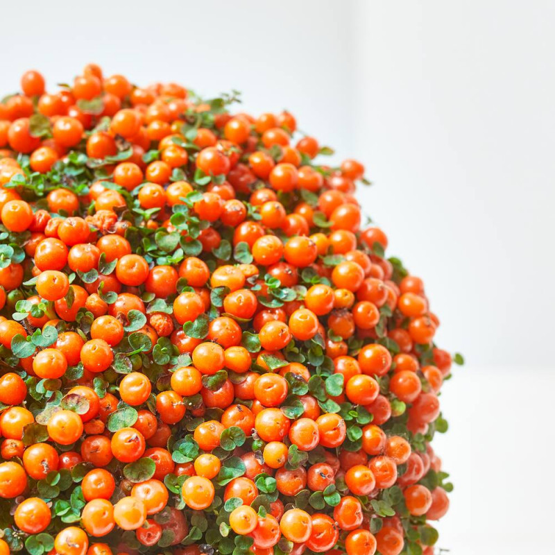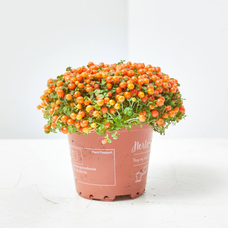 La Nertera es una planta que destaca por su fructificación en tonos verdes y naranjas, especialmente en invierno. Pertenece al género de las Rubiaceae, originaria de América del Sur y Central, y es conocida por sus pequeñas dimensiones y su forma rastrera, lo que le permite cubrir superficies horizontalmente. La especie más común es la Nertera granadensis, llamada también coralito, uvita de agua o planta de canicas, aunque hay otras como la Nertera balfouriana.