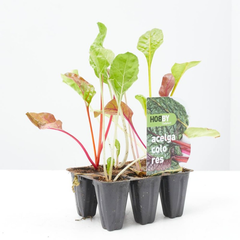 Acelga de hojas anchas y verdes, con pencas de colores: blancas, rojas, naranjas, rosas o amarillas según la variedad. Su sabor es suave y ligeramente terroso, y se puede consumir tanto cruda como cocida. Muy productiva y resistente, ideal para huertos de todo tipo.