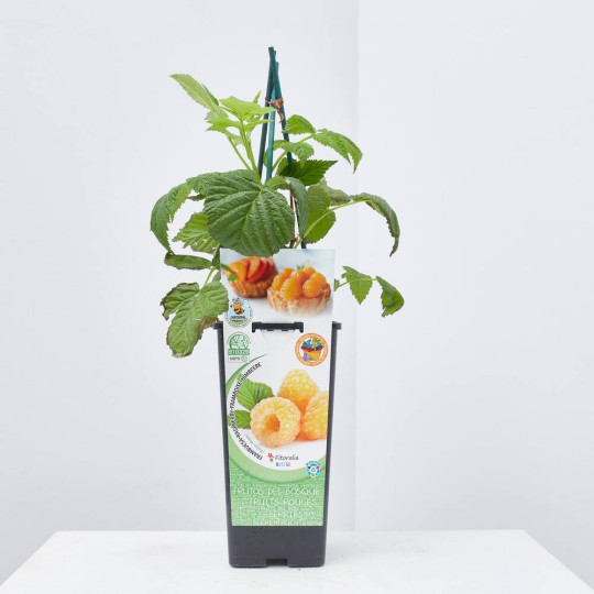 Planta de frambueso en maceta cuadrada de 2L. Con los cuidados apropiados podrás cosechar estos deliciosos frutos del bosque con muchas propiedades beneficiosas para tu salud.