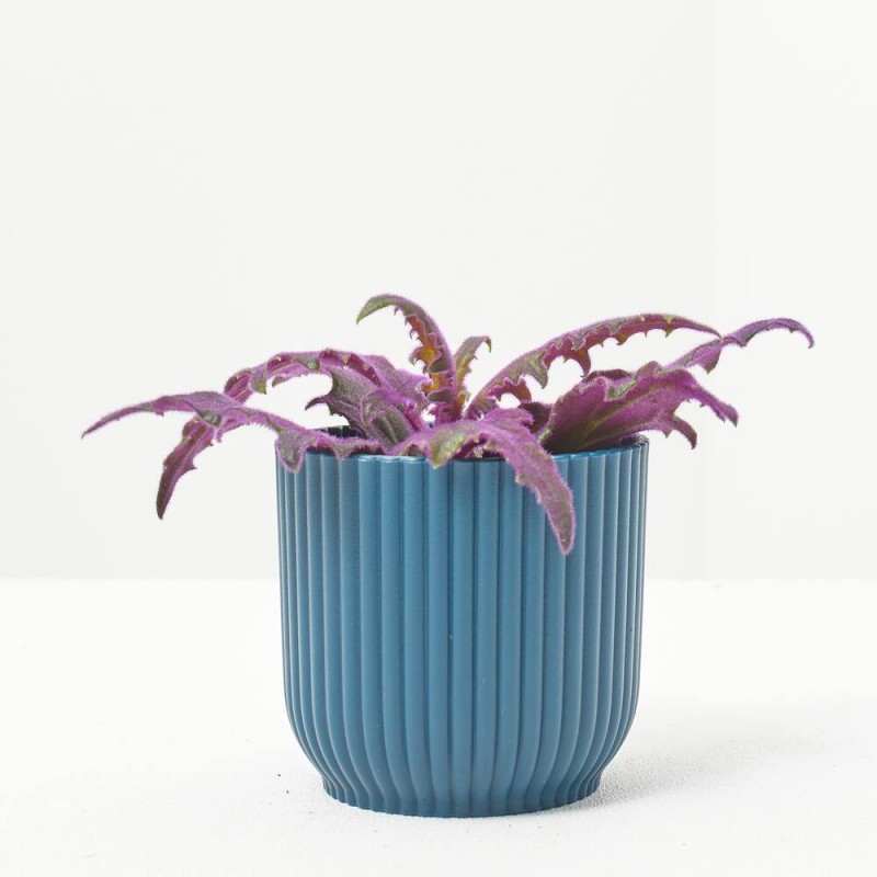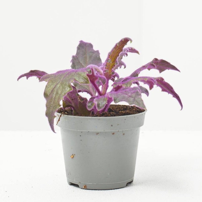 La Gynura aurantiaca es conocida por su singular follaje de color púrpura oscuro y textura aterciopelada. Sus hojas dentadas y cubiertas de vellosidades moradas la hacen una planta muy atractiva para la decoración interior. Esta planta también produce pequeñas flores amarillas en primavera y verano, aunque no son muy apreciadas por su olor desagradable