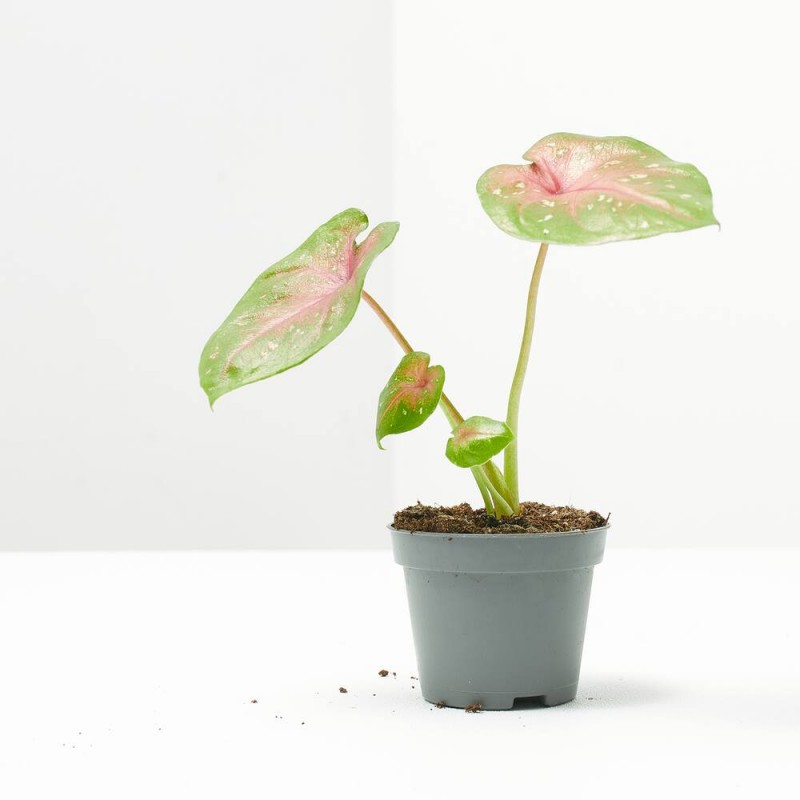 El Caladium 'Casey' es una planta tropical conocida por sus grandes hojas en tonos vibrantes de rosa, blanco y verde. Ideal para interiores y jardines en zonas cálidas, es popular por su valor ornamental.