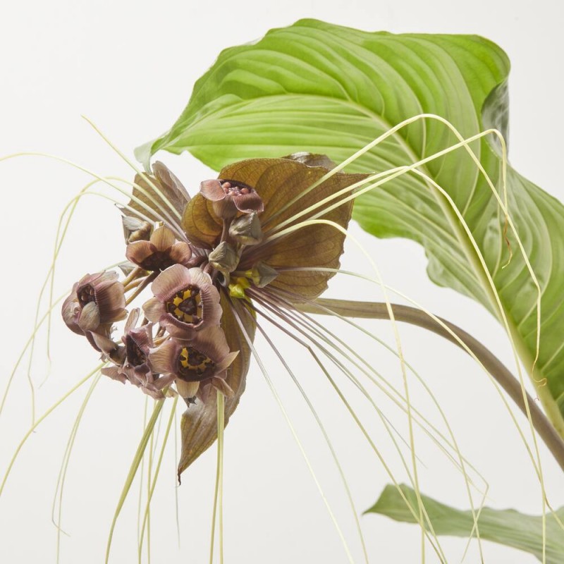 La Tacca, conocida comúnmente como flor murciélago, es una planta exótica de gran valor ornamental perteneciente a la familia Dioscoreaceae. Destaca por sus impresionantes flores, que presentan largas brácteas y filamentos que recuerdan las alas y bigotes de un murciélago, lo que la hace una de las especies más llamativas del mundo vegetal. Aunque su aspecto pueda parecer misterioso, es una planta relativamente fácil de cultivar si se le proporcionan las condiciones adecuadas de humedad, temperatura y luz. Entre sus especies más conocidas se encuentran la Tacca chantrieri, de flores oscuras casi negras, y la Tacca integrifolia, de brácteas blancas y aspecto más claro.