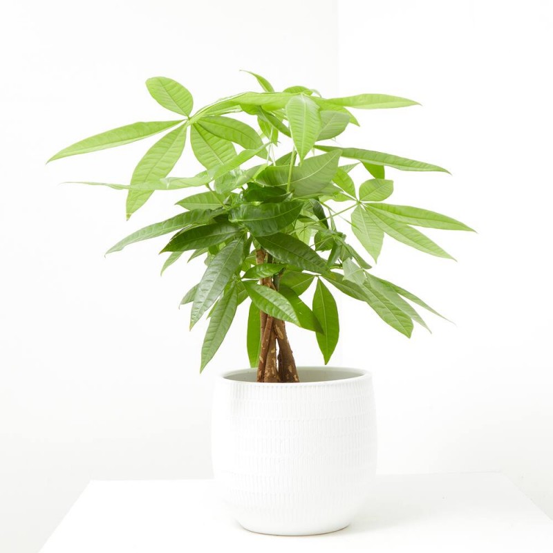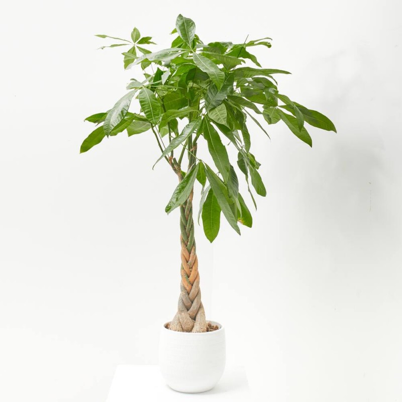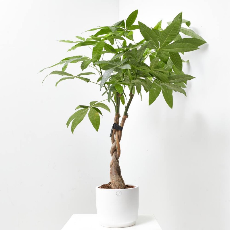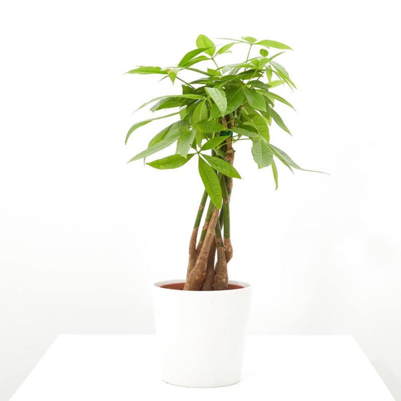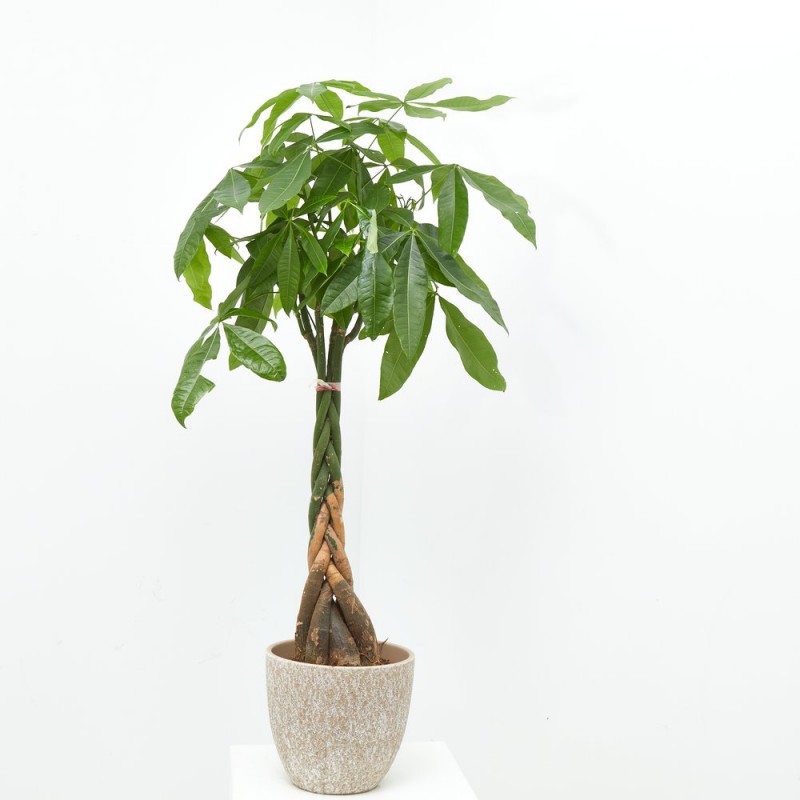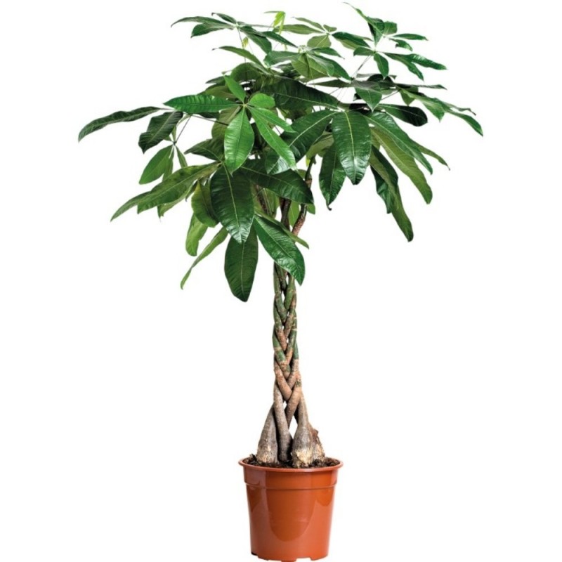 La pachira, también conocida como árbol del dinero o castaño de guayaba, es una planta exótica, con una forma especial, que le dará ese toque diferente que buscas en tu hogar. Es muy apreciada por sus hojas grandes, palmeadas y brillates, además presenta un tronco trenzado lo que le da un plus a su valor estético. Las flores son grandes, perfumadas y con colores vistosos. También presenta frutos leñosos que se abren y son comestibles al igual que las hojas y las flores. Incluso su tronco tiene la posibilidad de almacenar agua.