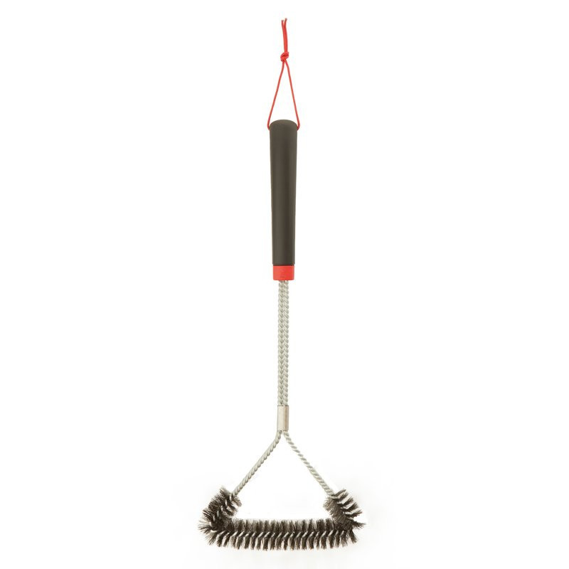 Este cepillo para parrillas triangular está fabricado para eliminar la grasa y los residuos de rejillas de cocción de todos los tamaños. El diseño del mango ofrece una firme empuñadura a la hora de desprender restos adheridos o limpiar espacios de difícil acceso. Con este cepillo para parrillas, puedes limpiar las rejillas antes de cada uso y prolongar así la vida útil de tu barbacoa, al tiempo que te aseguras de que la próxima comida salga tan deliciosa como la anterior.