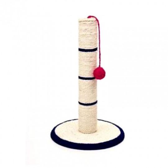 Rascador de 45cm de altura forrado con cuerda de sisal y bola, muy resistente y duradero.