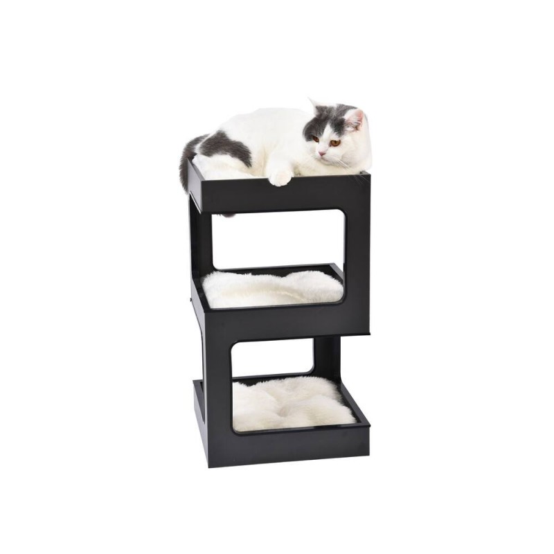 Rascador para gatos, dispone de diferentes zonas de descanso y de varias zonas de juego para que su gato se divierta saltando de un nivel a otro. Dispone también de varios lugares donde poder rascarse. Las plataformas están fabricadas con felpa suave y los postes de cuerda sisal natural. Tiene una altura de 60cm, con la base más ancha para así conseguir mayor estabilidad. Disponible en diferentes colores.
