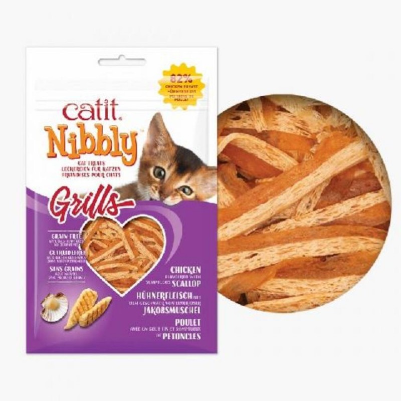 Como todos los snacks de Catit, el Nibbly Grills no contiene granos, trigo o maíz. No tiene sabores artificiales, y la glicerina utilizada en el proceso de tratamiento de este snack, es completamente natural y de origen vegetal.