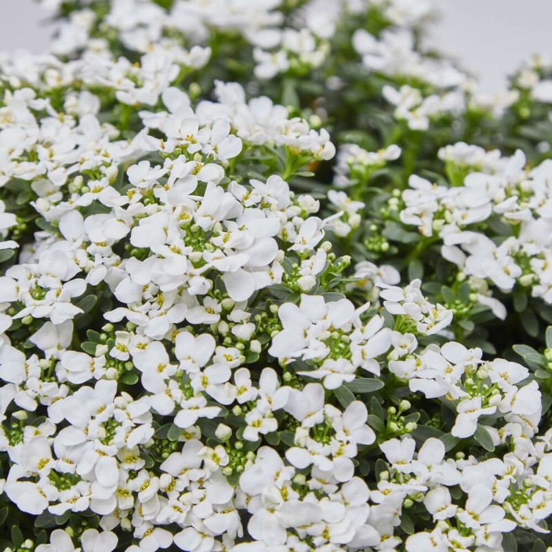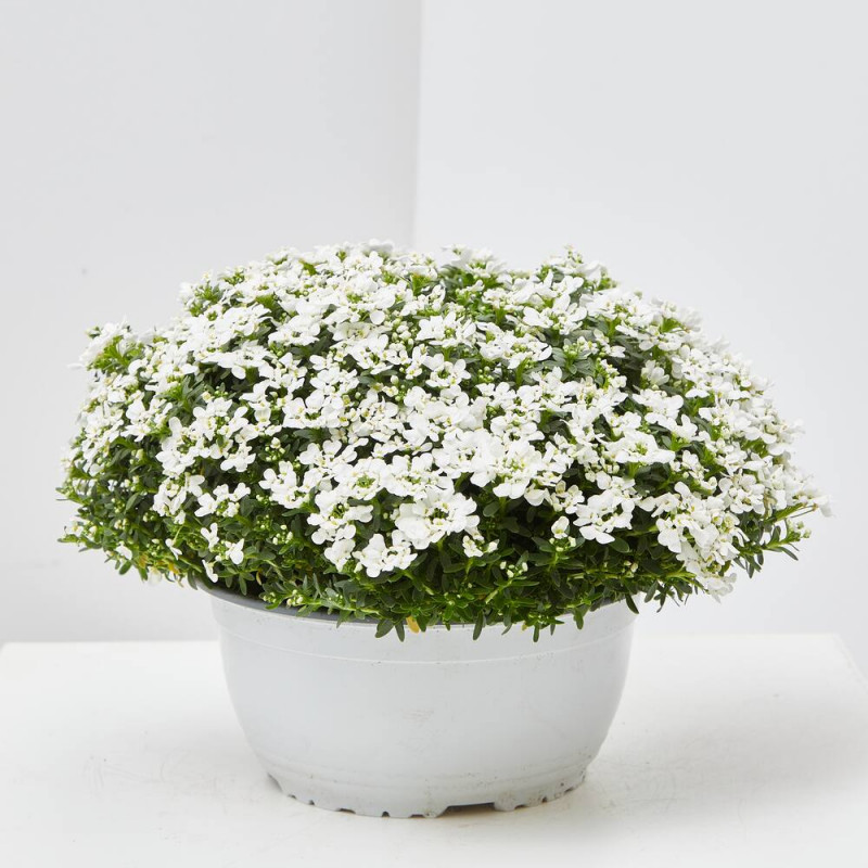 El Iberis, conocido comúnmente como la "Siempreviva", "Candytuft" en inglés, o "Iberis sempervirens" técnicamente, es una planta perenne que se destaca por su prolongada y brillante floración primaveral. Originaria de Europa, esta planta es ideal para bordes, rocallas y como cobertura del suelo, ofreciendo un tapiz denso de flores blancas que atraen a polinizadores como abejas y mariposas.