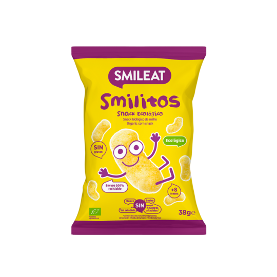 Producto infantil ecológico listo para consumir, elaborado con sémola de maíz y aceite de oliva virgen extra. Sin gluten, sin azúcares añadidos ni sal. Ideal como snack para bebés a partir de 8 meses. Smileat garantiza una opción saludable, sabrosa y segura para la alimentación complementaria.