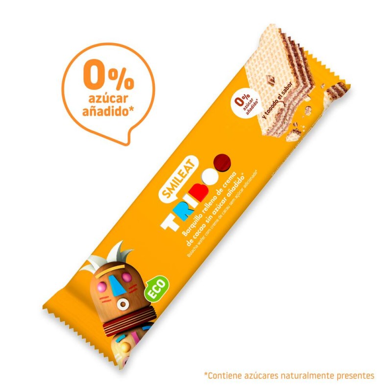 Barrita de barquillo crujiente rellena con crema de cacao, elaborada con ingredientes de agricultura ecológica. Sin azúcares añadidos y rica en fibra. Un snack práctico, sabroso y equilibrado, ideal para niños a partir de 12 meses.