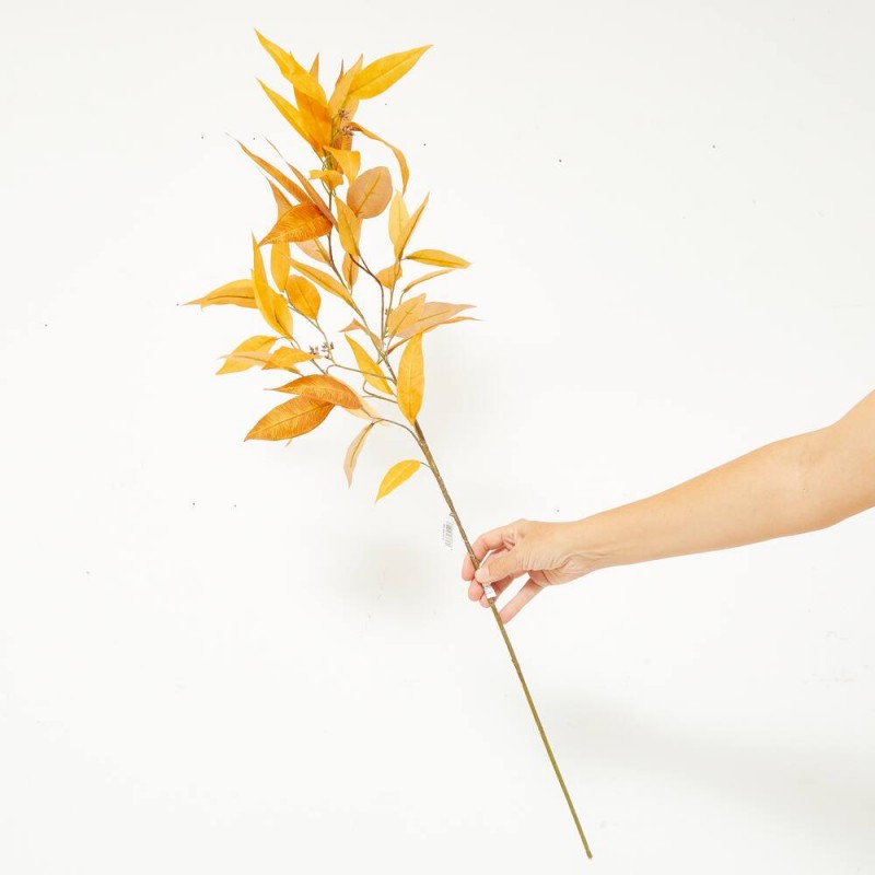 Rama artificial de eucalipto globulus en tono coñac, perfecta para arreglos otoñales, jarrones altos y decoración de interiores.