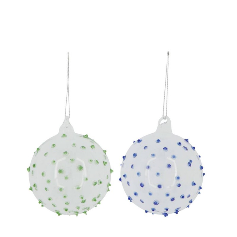 Bolas navideñas de cristal transparente con detalles en relieve de puntos de color, modernas y decorativas para el árbol.