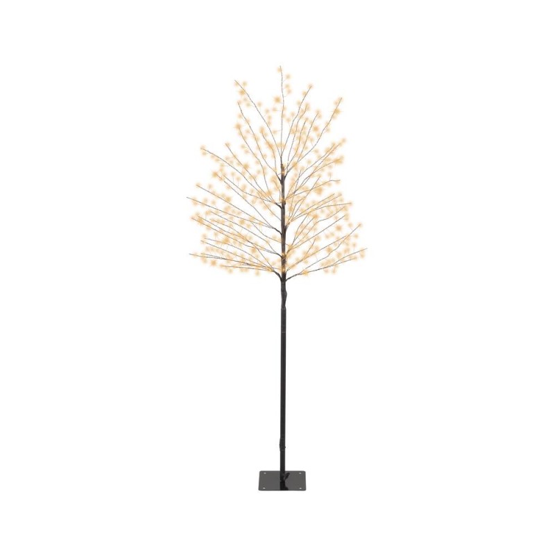 Abeto decorativo de 150 cm con estructura metálica en acabado cobre y 480 micro LEDs de luz cálida. Ideal para decoración navideña en exteriores o interiores, ofreciendo un diseño elegante y luminoso de bajo consumo.