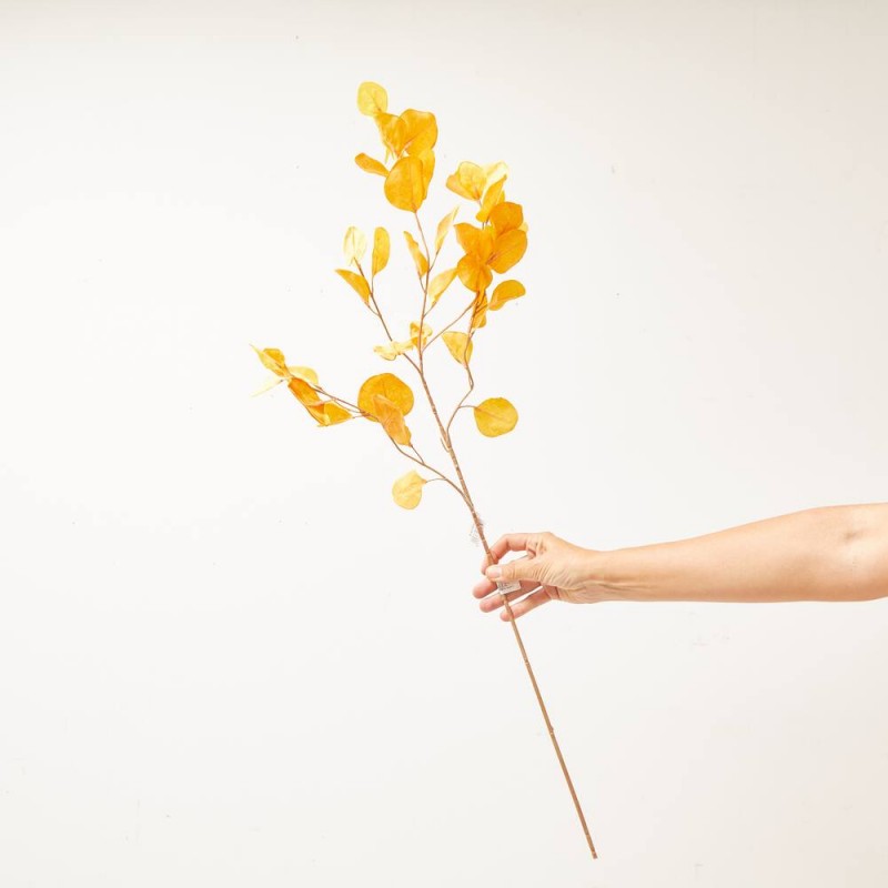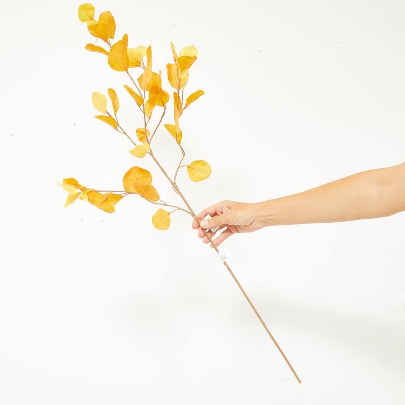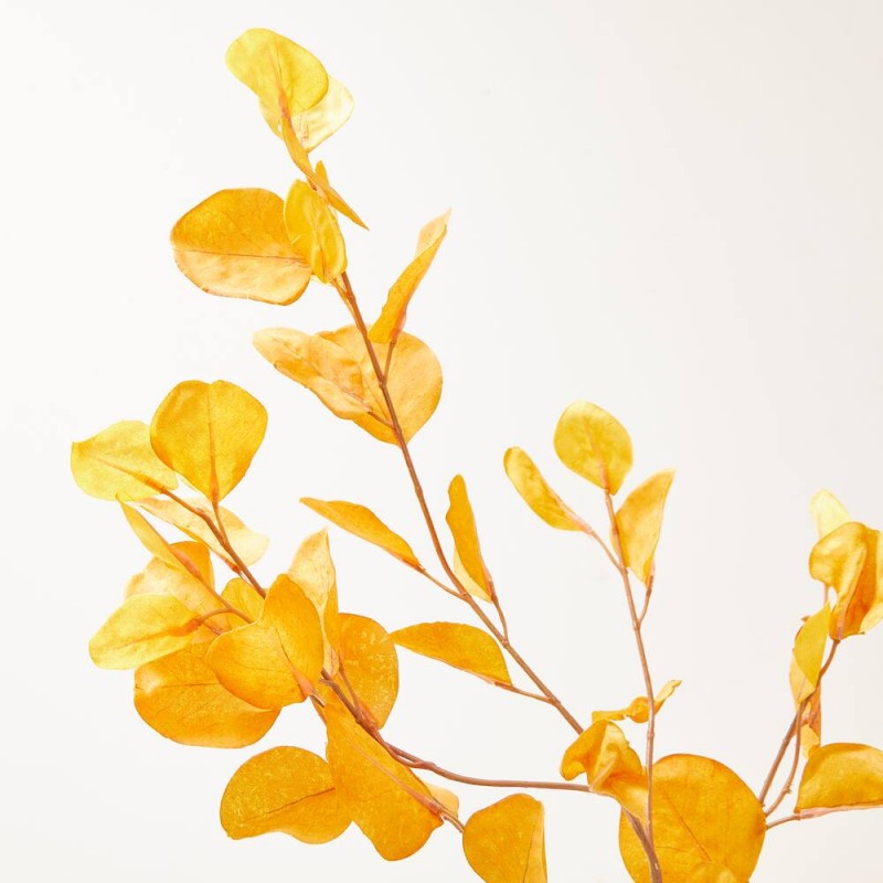 Rama artificial de eucalipto en tonos otoñales con acabado seco, ideal para jarrones altos, arreglos decorativos y ambientación estacional.