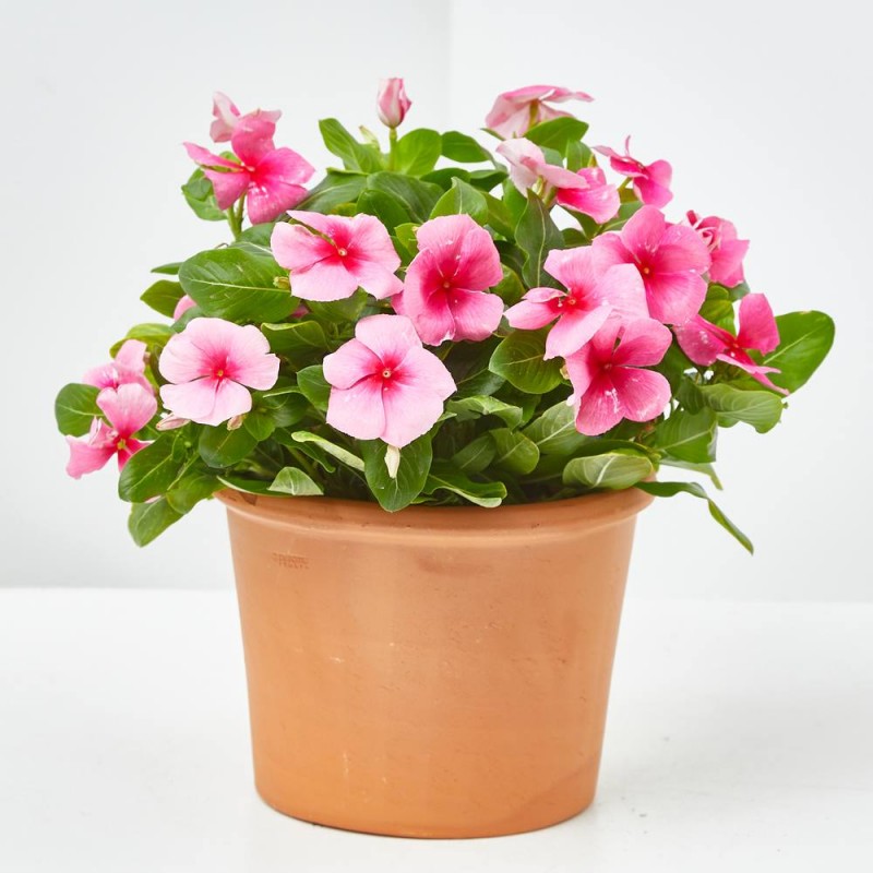 La vinca es una planta herbácea perenne, conocida científicamente como Catharanthus roseus. También es llamada vinca de Madagascar, chatas o teresitas, y se destaca por su floración prolongada y colorida.