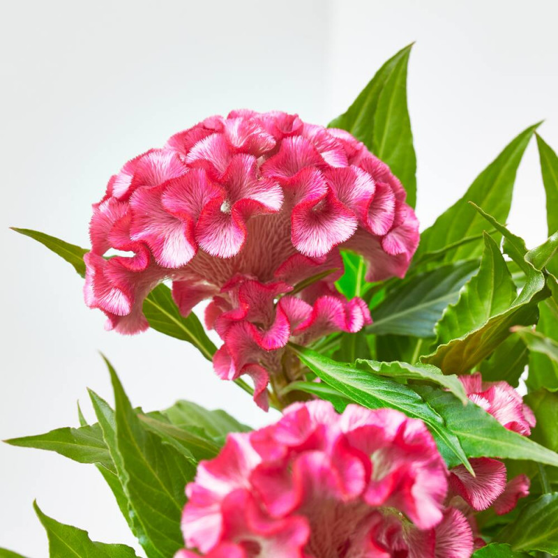 La Celosía Plumosa, conocida científicamente como Celosia argentea var. plumosa, es apreciada por sus espectaculares flores plumosas que aportan un toque exótico y colorido a cualquier jardín o arreglo floral.