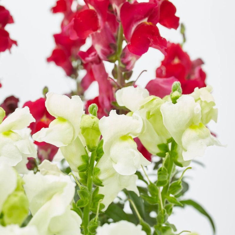 El Antirrhinum majus, también conocido como boca de dragón, es una planta herbácea anual perteneciente a la familia Plantaginaceae. Es apreciada por sus vistosas y llamativas flores en forma de boca de dragón, que vienen en una amplia gama de colores y son muy populares en jardinería.
