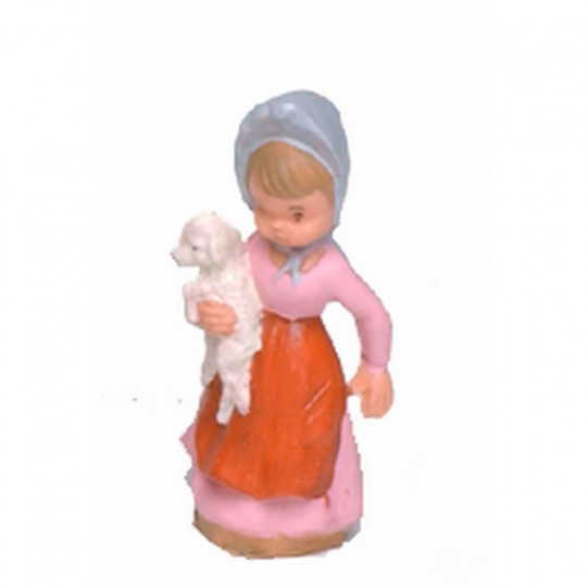 Figura de niña con cordero fabricada en resina, ideal para decorar el belén de Navidad.